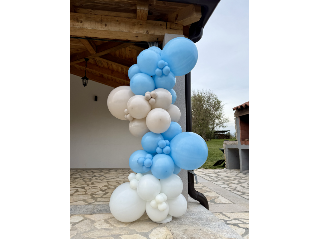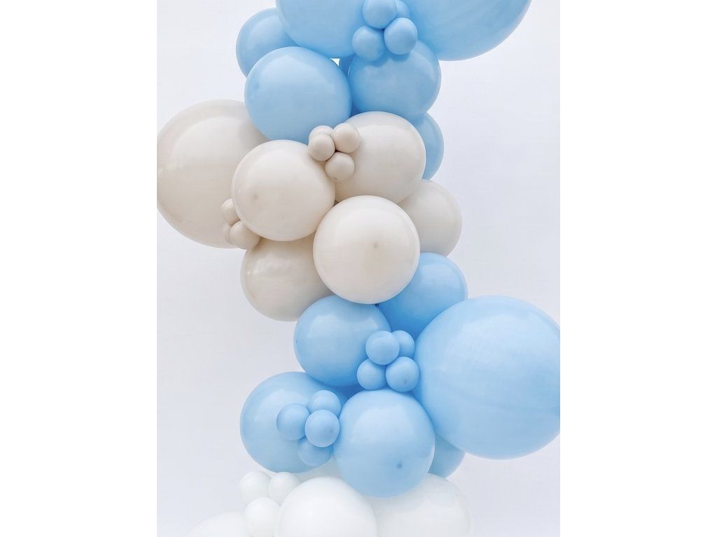 BABY BLUE je jemná a elegantní balónková girlanda v odstínech bílé, baby blue a latte. Působí elegantně, roztomile a přirozeně. Žádný křiklavý mix, ale promyšlený design, který zapadne do každého interiéru.