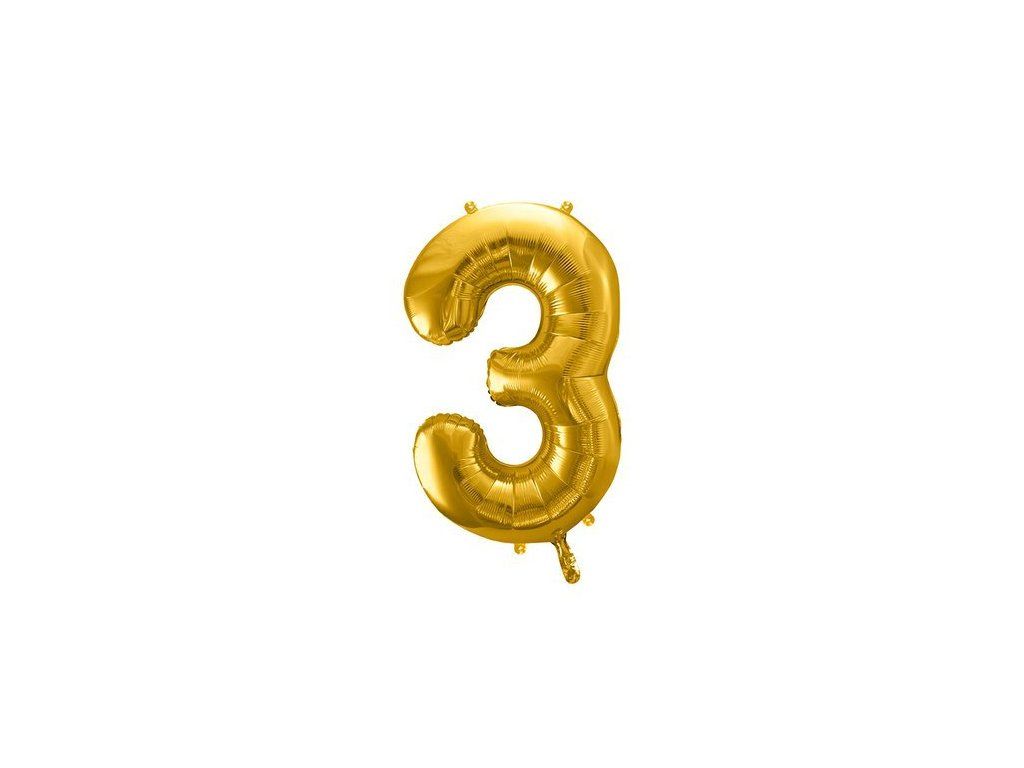 Balónek fóliový číslo 3 ZLATÝ - 80 cm